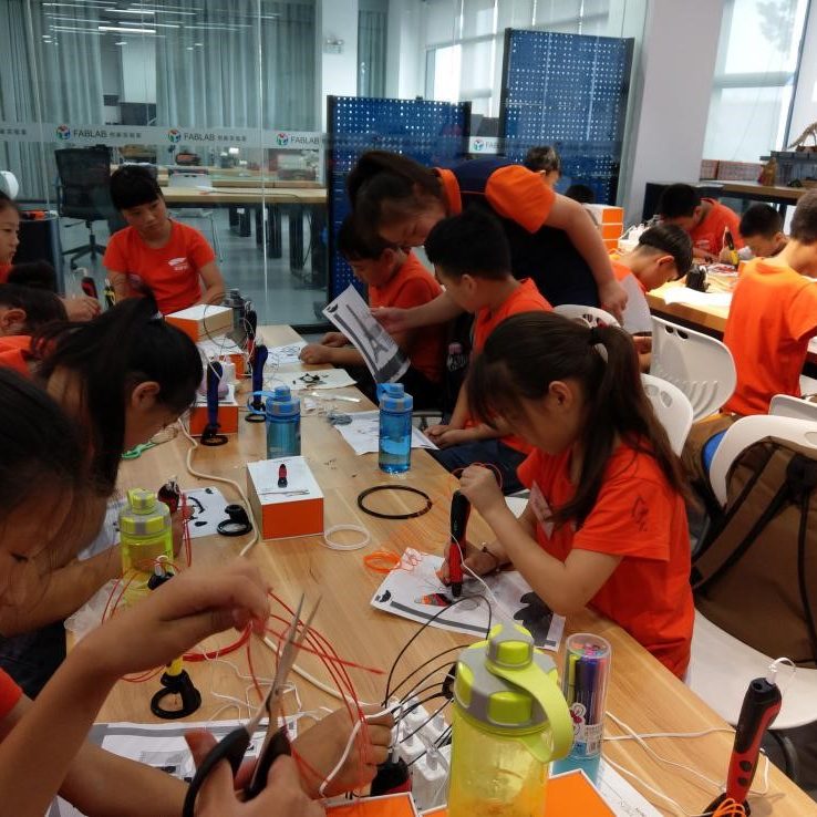 郑州市管城回族区春晓小学的学生及家长一行60人,来到FABLAB轩辕创新实验室进行科技体验活动